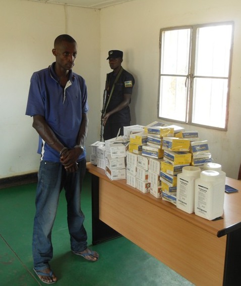 Yafatanywe udukarito mirongo ine twa Coartem,imiti ikoreshwa mu kuvura marariya, n’ibinini ibihumbi bitatu bya Bactrim, byari mu macupa atatu,bikoreshwa mu kuvura uburwayi, burimo, ubwo mu matwi.