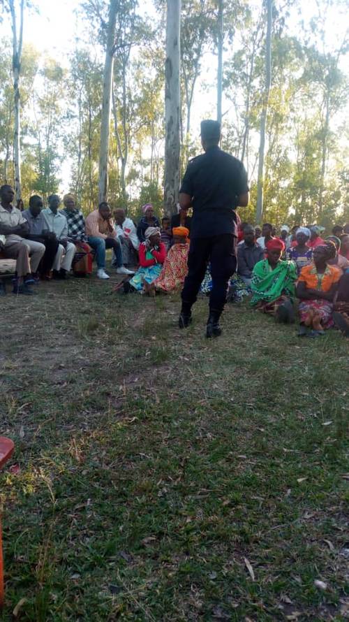 Inspector of Police(IP) Joseph Tuyambaze ushinzwe guhuza ibikorwa bya Polisi n’abaturage mu karere ka Nyanza arikumwe n'umukozi ufite mu nshingano ze iterambere ry’umuryango mu karere ka Nyanza, Mukamukiza Charlotte hamwe n'umukozi ushinzwe imibereho myiza mu murenge wa Kigoma, basuye umugoroba w'ababyeyi wo mu mudugudu wa Nyesonga mu kagari ka Butansinda mu murenge wa Kigoma babasaba gukumira amakimbirane n’ibindi byaha.