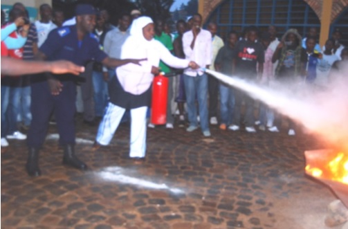 Nyuma yo kwiga habayeho gushyira mubikorwa ibyo bari bamaze kwiga harimo kuzimya inkongi zimiriro hifashishejwe kizimwamoto n’umucanga.