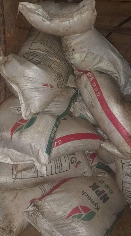 Yakomeje ati: “Twakurikiranye aho bayivanaga, mu rugo rw’umuturage uhatuye wahise wiruka agatoroka akimara kubona inzego z’umutekano, tuhasanga imifuka 20 y’ifumbire yo mu bwoko bwa NPK, ipima ibiro 500 yose hamwe, irafatirwa mu gihe hagishakishwa nyirayo.”