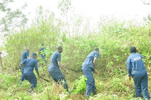 Abapolisi bakaba bitabiriye umuganda, abakorera ku cyicaro gikuru cyayo kiri ku Kacyiru bakaba batemye ibihuru biri hafi y’ikigo ku Kacyiru, banakora isuku mu kibuga gikusanyirizwamo ibinyabiziga byafatiwe mu makosa n’ibyakoze impanuka aho biba bitegereje ko ba nyirabyo bishyura amande baba baciwe bagasubirana ibinyabiziga byabo.