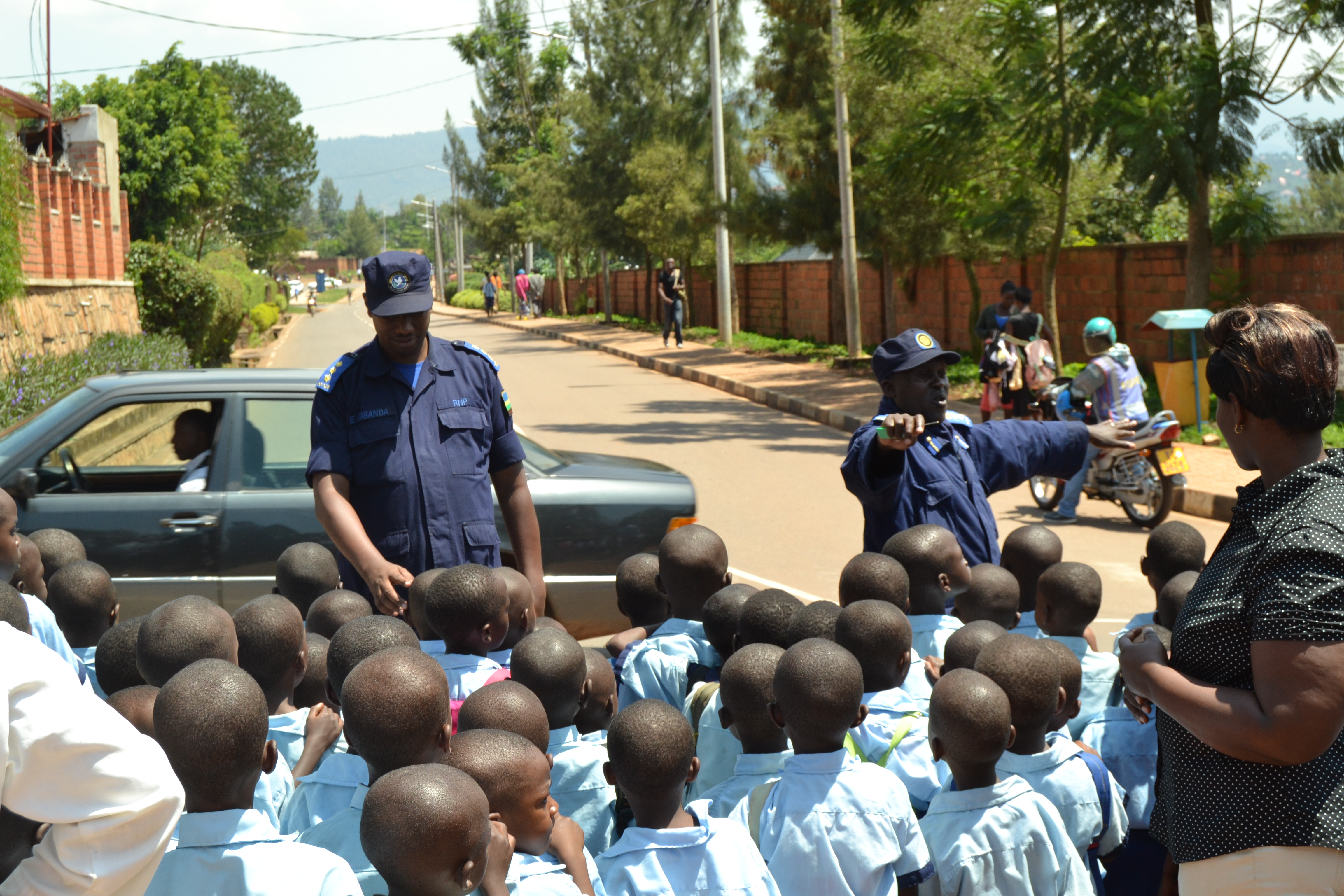 Chief Supt. of Police (CSP) Anselme Ahimana ushinzwe inyigisho n’amahugurwa mu ishami rya Polisi y’u Rwanda rishinzwe umutekano wo mu muhanda, yigishije abanyeshuri b’ishuri rya Kacyiru I amategeko agenga imigendere yo mu muhanda kugirango birinde gukora cyangwa guteza impanuka mu muhanda.