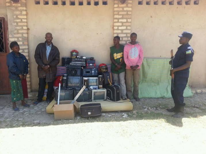 Hafashwe televiziyo 4, matora 3 nshya, ibyuma bya DVD 3, telephone 4 zo mu bwoko bwa Techno, imyenda bashyingiranwa , bifatanwa abitwa Nzamurambaho Obedi Sadam w’imyaka 40 y’amavuko, Ndagijimana Lambert w’imyaka 25 na Musabyimana Beatrice w’imyaka 30, ubu bakaba bafungiye kuri sitasiyo ya Polisi ya Bweramana mu gihe iperereza rikomeje.