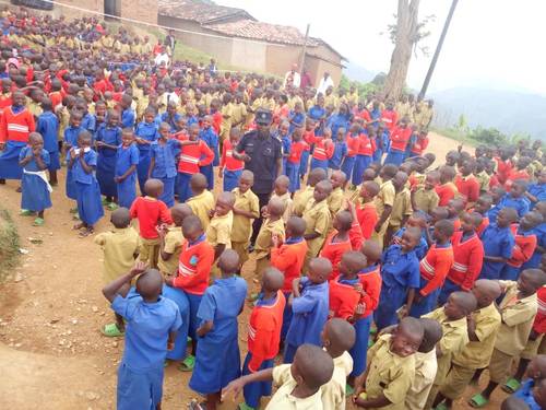 Ibiganiro byatanzwe na Inspector of Police (IP) Jean Bosco Mugenzi ushinzwe guhuza ibikorwa bya Polisi n’abaturage hagamijwe gukumira ibyaha bitaraba mu karere ka Rutsiro ari kumwe n’umuyobozi w’ishuri Uwitonze Gaëtain.