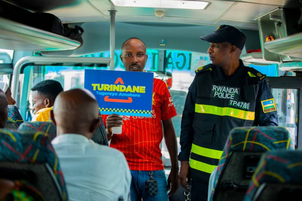 Kuri uyu wa Gatatu tariki ya 17 Ukuboza, Polisi y’u Rwanda yakomeje gahunda y’ubukangurambaga bw’umutekano wo mu muhanda mu isura ya ‘Turindane-Tugereyo amahoro’ mu bashoferi b’imodoka zitwara abagenzi mu buryo bwa rusange bo mu Mujyi wa Kigali.