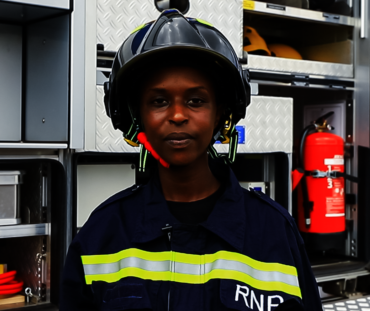 Agira ati: “Muri Polisi y’u Rwanda abagore ntitwasigaye inyuma mu gucunga umutekano. Bintera ishema kuba ngira uruhare mu gutabara abari mu kaga, baba abugarijwe n’inkongi cyangwa abaguye mu byobo n’amasimu, tukabakuramo twifashishije ibikoresho byabugenewe.”