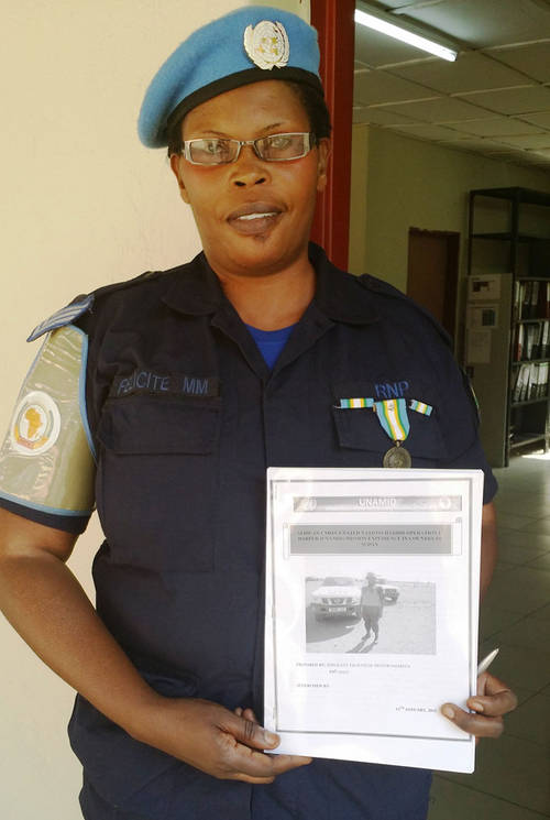 Kubera ubudashyikirwa bwe,Seargeant Mujawamariya,umwaka ushyize,yahawe umudari w’ishimwe n’umuryango w’abibumbye nk’umwe mu bayobozi b’ababapolisi bari bashinzwe kubungabunga amahoro muri Darfur wahize abandi.