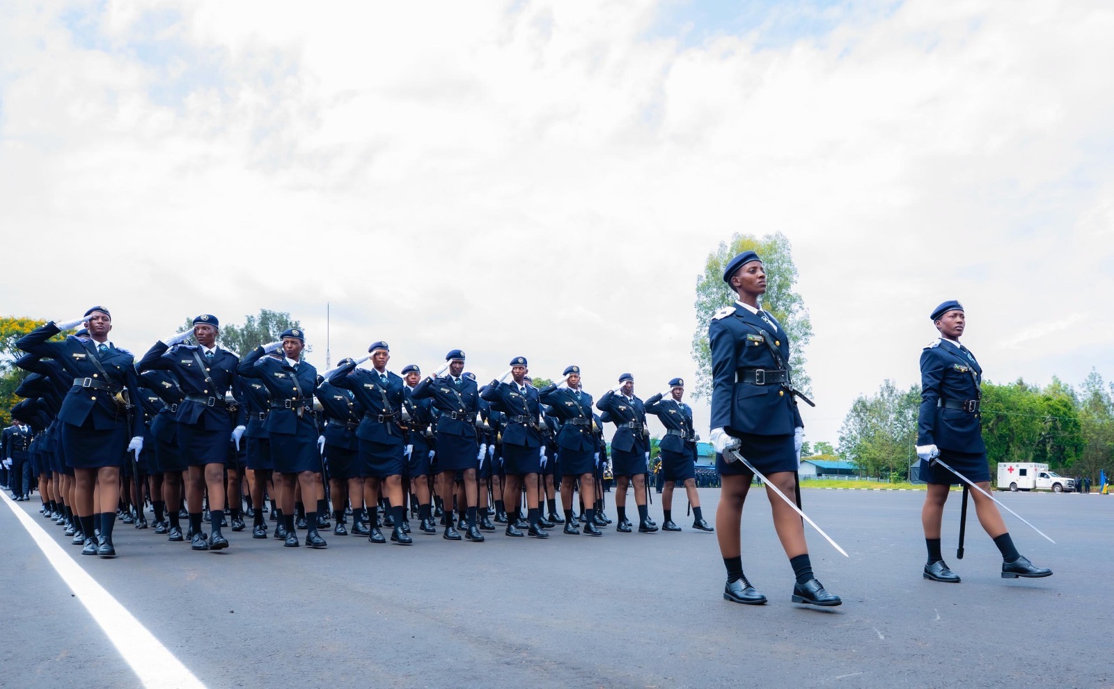 Isibo y'abapolisikazi mu muhango wo gusoza amahugurwa ya ba ofisiye bato mu kigo cy'amahugurwa i Gishari mu Karere ka Rwamagana
