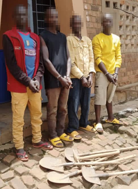 Police also seized from the suspects, tools including hoes, spades and pick mattock which they were using.
