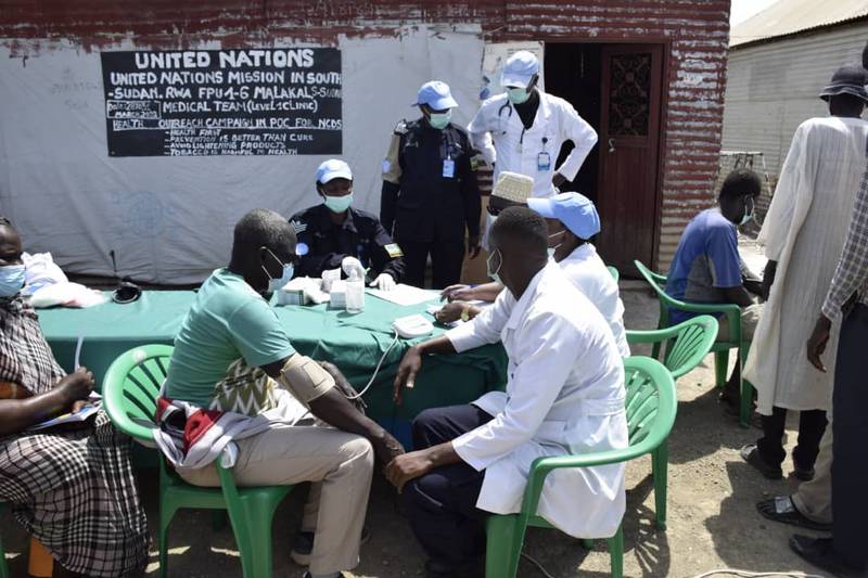 The medical units of the Rwandan Police and military peacekeepers deployed in Malakal, Upper Nile State under the United Nations Mission in South Sudan (UNMISS), have launched a healthcare outreach for the communities displaced by violent conflicts and currently in the Protection of Civilian Camp (POC).