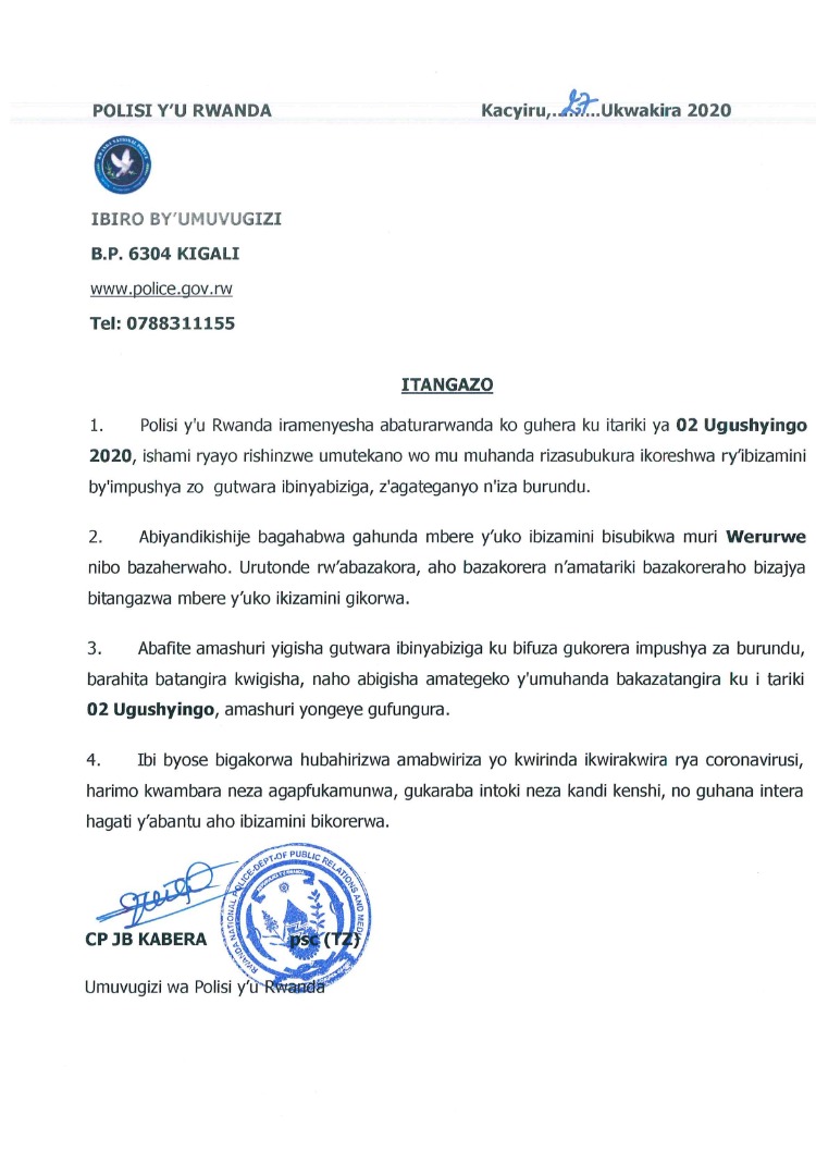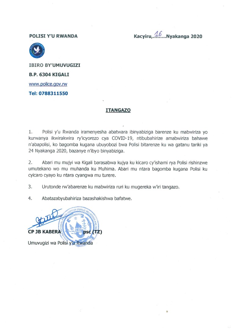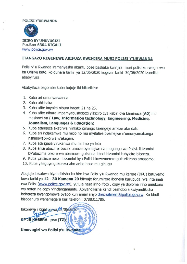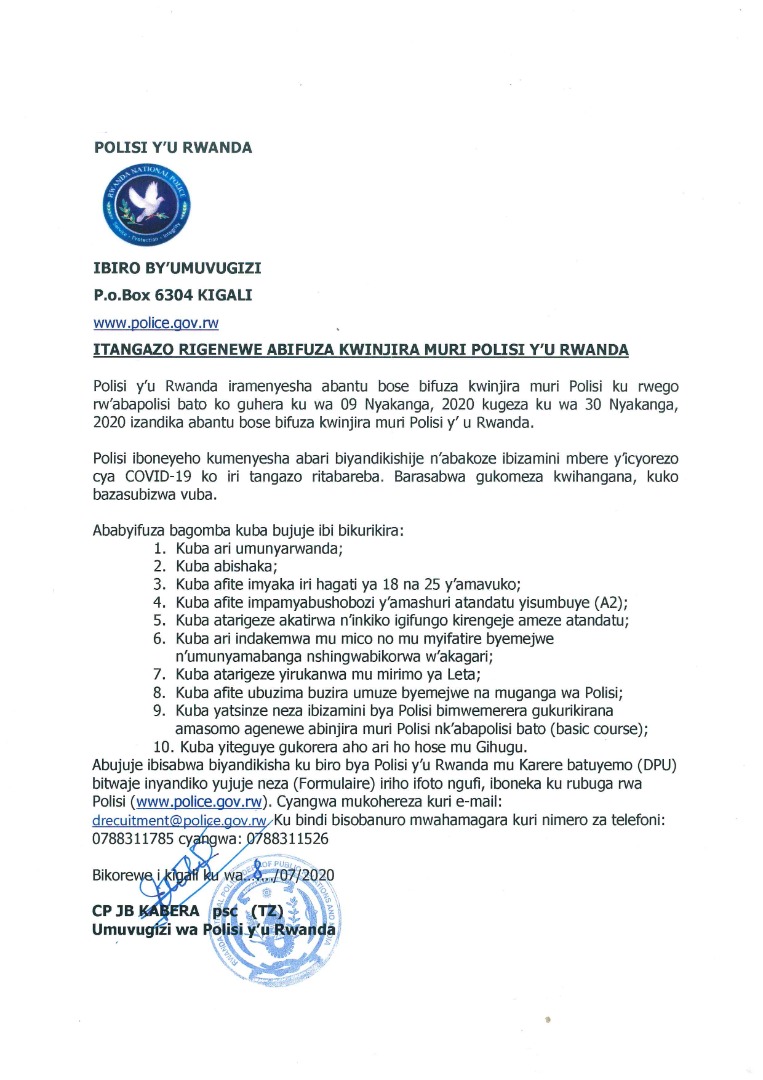 ITANGAZO RIGENEWE ABIFUZA KWINJIRA MURI POLISI Y'U RWANDA